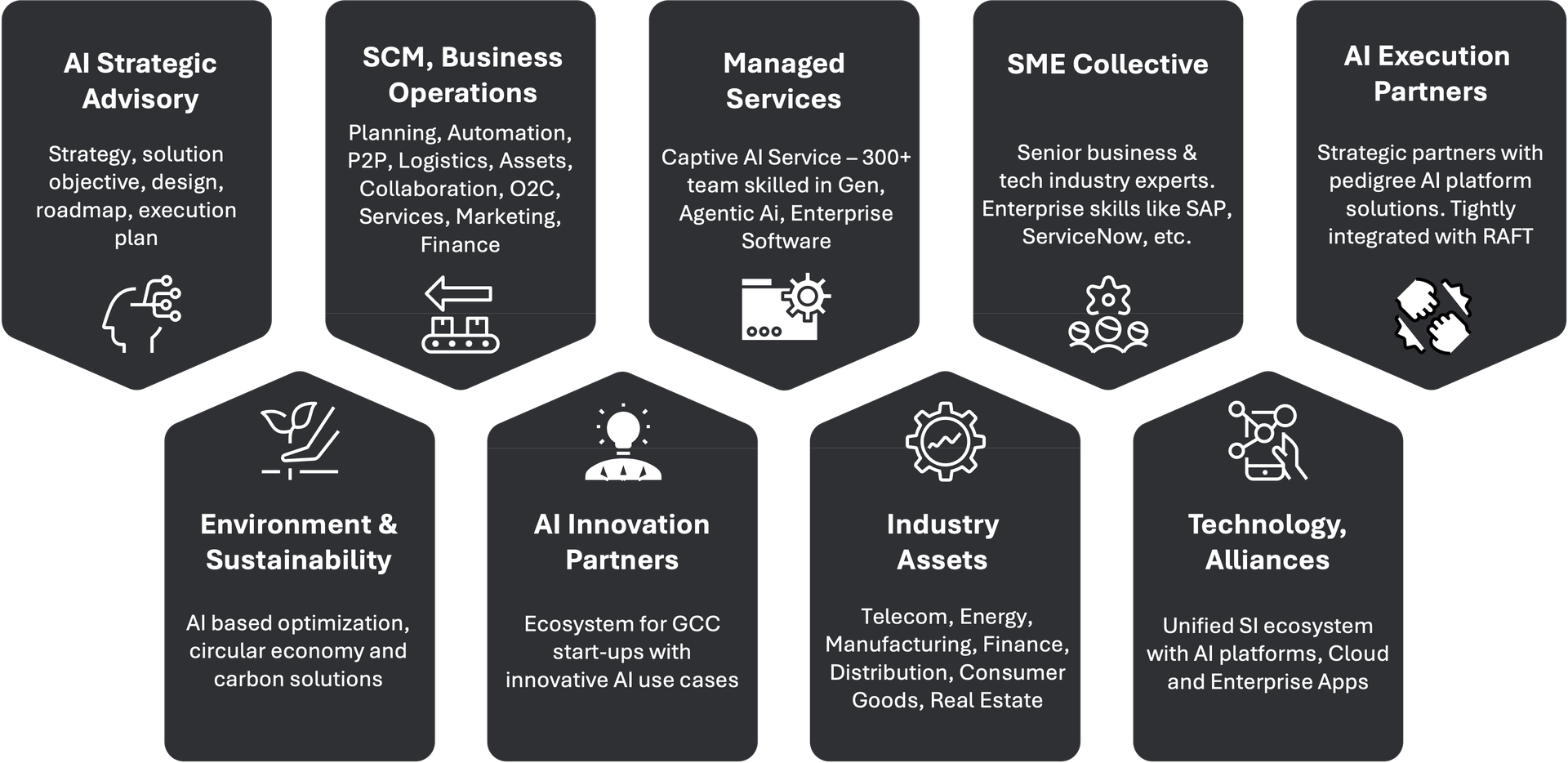 A focussed advisory, solutions and services firm that enables customers and stakeholders to take strategic shift towards Artificial Intelligence powered enterprise systems. At RAFT, we are constantly collaborating with leading AI tech innovators, service hubs and leading subject matter experts to design, develop, execute and evolve tomorrow's interpretation of advanced solutions today. Our customers place utmost trust in us to find the most optimum balance of business processes, traditional enterprise applications and modern AI solutions.